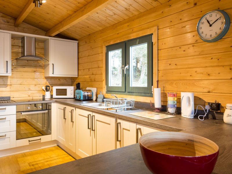 The chalet is finished to a high spec with oak furniture in keeping with the overall style and design. It has open planned living space and lots of windows bringing in plenty of natural light.